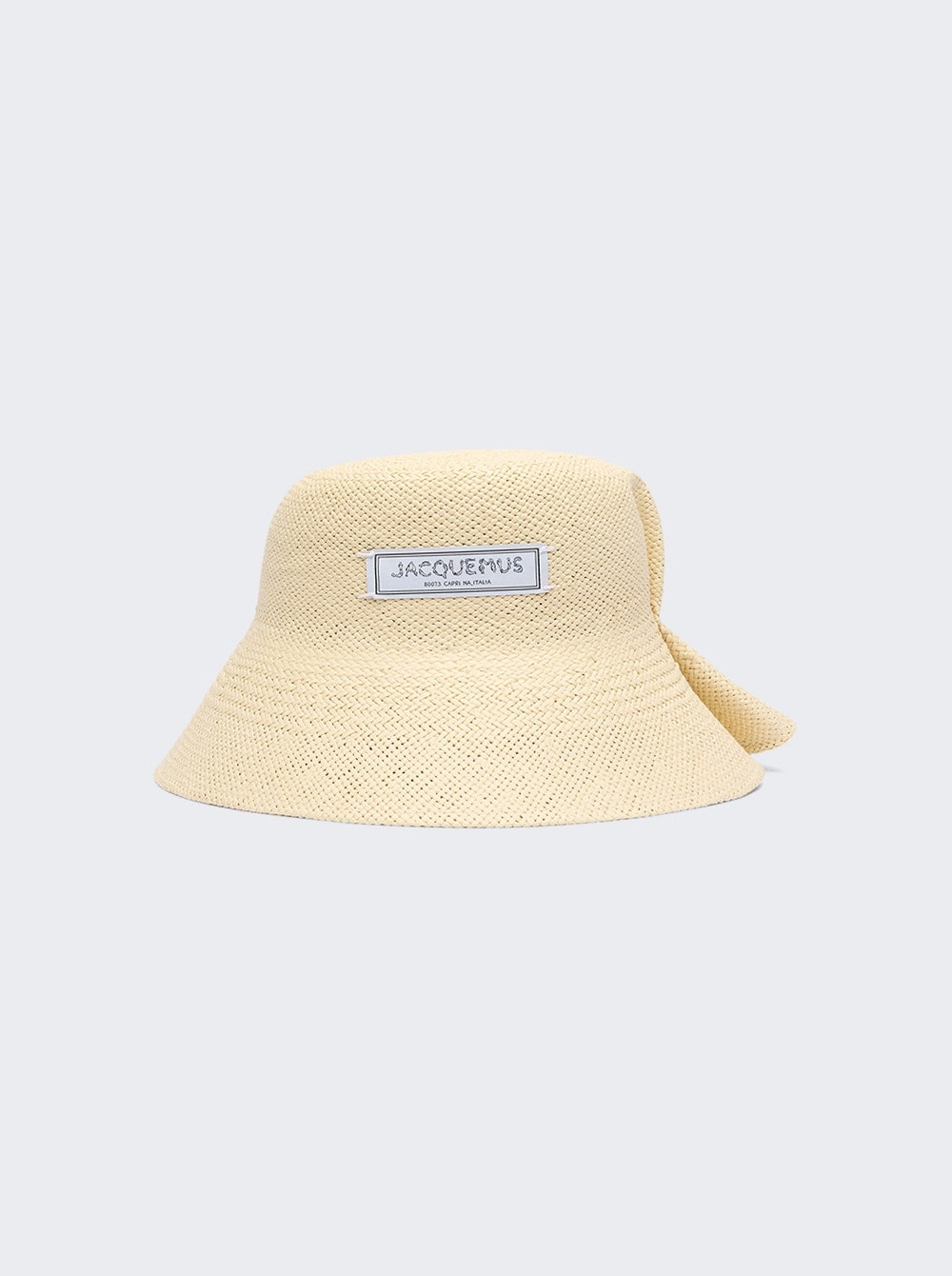 Details - Woven raffia bucket hat - Fabric logo at front - Short visor Dimensions: True to size Composition: 100% Raffia Care: Care according to label Brand Style: 246AC677-5212 Designer/Brand: JACQUEMUS