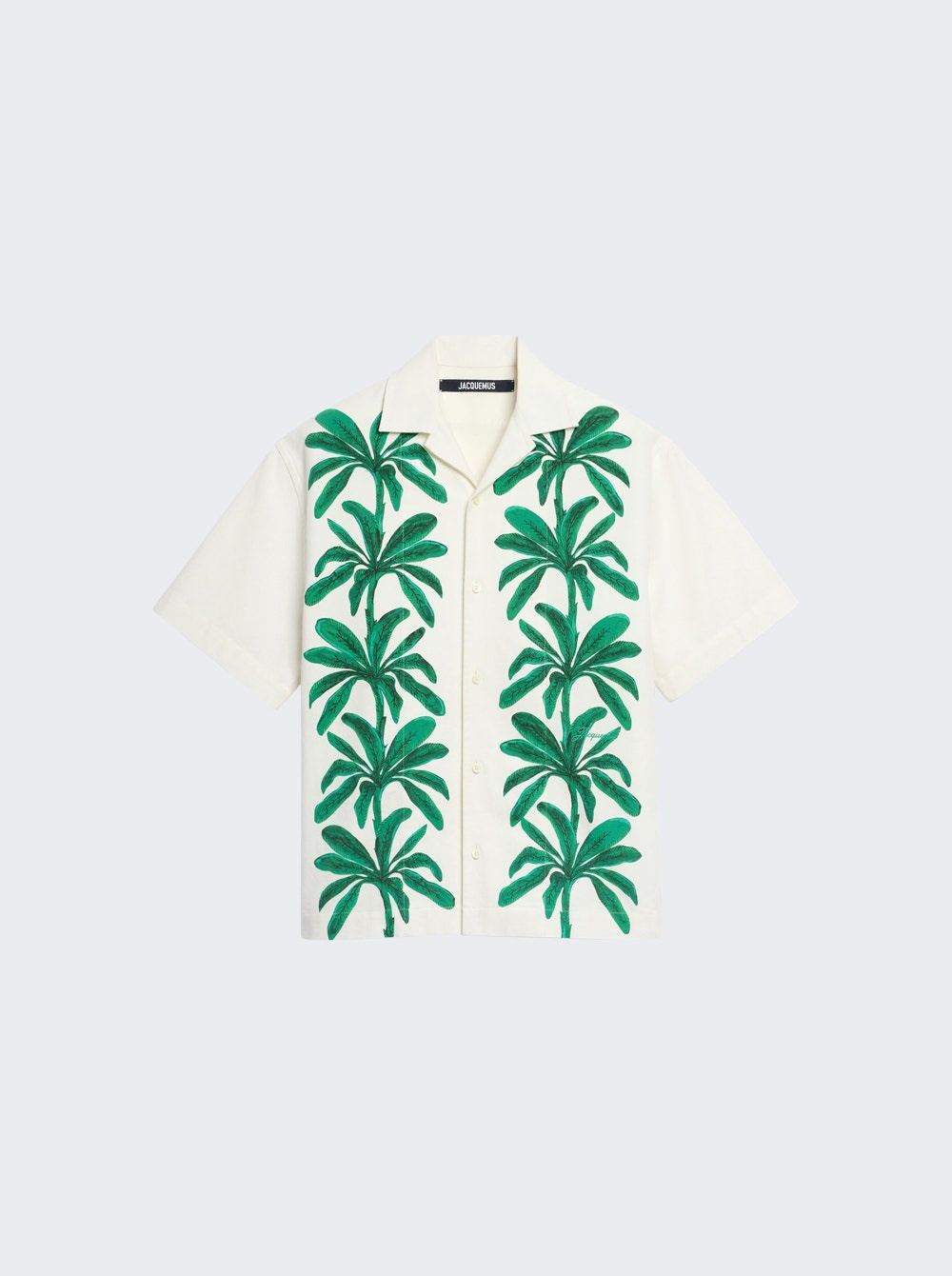 Details - Regular fit - Short sleeve - Classic collar - Printed painted palm trees - Button closure - Straight hem - Care according to label - Model is 6'1"/185cm and is wearing a size IT48 Brand Style: 255SH201-1585 Designer/Brand: JACQUEMUS