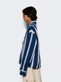 Details - Boxy fit with long sleeves - Blue and white stripe - Classic collar - Square cuffs - Jacquard logo Dimensions: Model is 6'1"/185cm and is wearing a size EU50 Composition: 99% Cotton, 1% Silk Care: Care according to label Brand Style: 246SH013-1655 Designer/Brand: JACQUEMUS