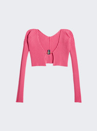Details - Relaxed silhouette - Long sleeves - Gold-tone logo clasp - Cropped design - Tonal stitching - Ribbed exterior - Straight hem Dimensions: Model is 5'9"/175cm and is wearing a size FR36 Composition: 81% viscose, 12% polyamide, 4% elastane, 3% polyester Care: Care according to label Brand Style: 213KN108-2190 Designer/Brand: JACQUEMUS