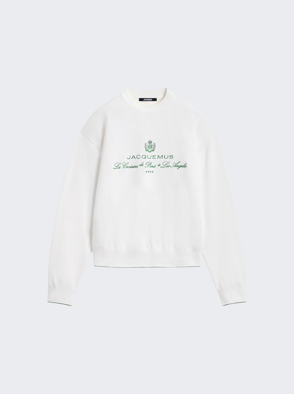 Details - Regular fit - Crewneck - Dropped shoulders - Long sleeves - Front logo design - Straight hem - Care according to label - Material: 53% Cotton, 42% Viscose, 5% Polyamide - Model is 6'1"/185cm and is wearing a size M Brand Style: 255KN544-2427 Designer/Brand: JACQUEMUS