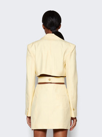 Details - Fitted fit - Tailored design - Long sleeve - Waist cut out - Front button closure - Double lined Dimensions: Model is 5'9"/175cm and is wearing a size FR36 Composition: 60% Linen, 26% Viscose, 14% Polyester Care: Care according to label Brand Style: 241DR016-1359 Designer/Brand: JACQUEMUS