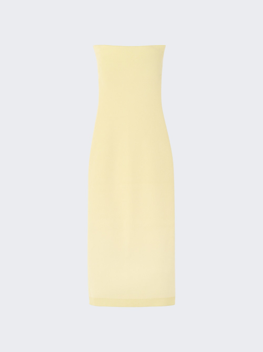 Details - Fitted shape - Midi length - Strapless - Stretched open buttonholes in the back - Embroidered “J” on the back - Buttoned back slit to adjust the fit - Care according to label - Material: 88% Viscose, 12% Polyester Size Information: Vendor Color Code: Brand Style: DRW00709AK00269 Designer/Brand: JACQUEMUS