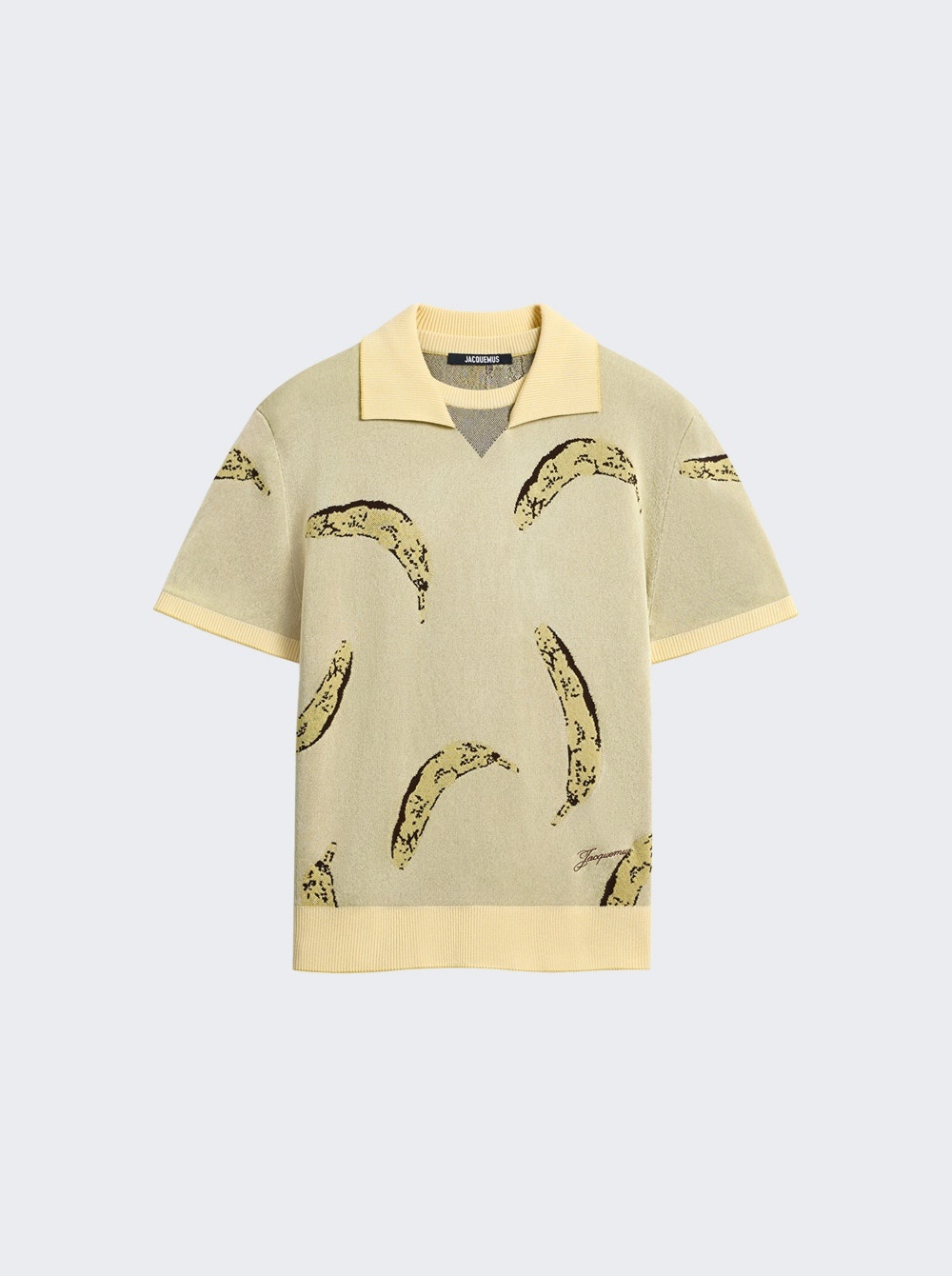 Details - Slim fit - Polo collar - Pull over design - Banana jacquard - Short sleeves - Ribbed hem - Care according to label - Material: Viscose, Polyester, Elastane - Model is 6'1"/185cm and is wearing a size M Brand Style: 255KN529-2025 Designer/Brand: JACQUEMUS