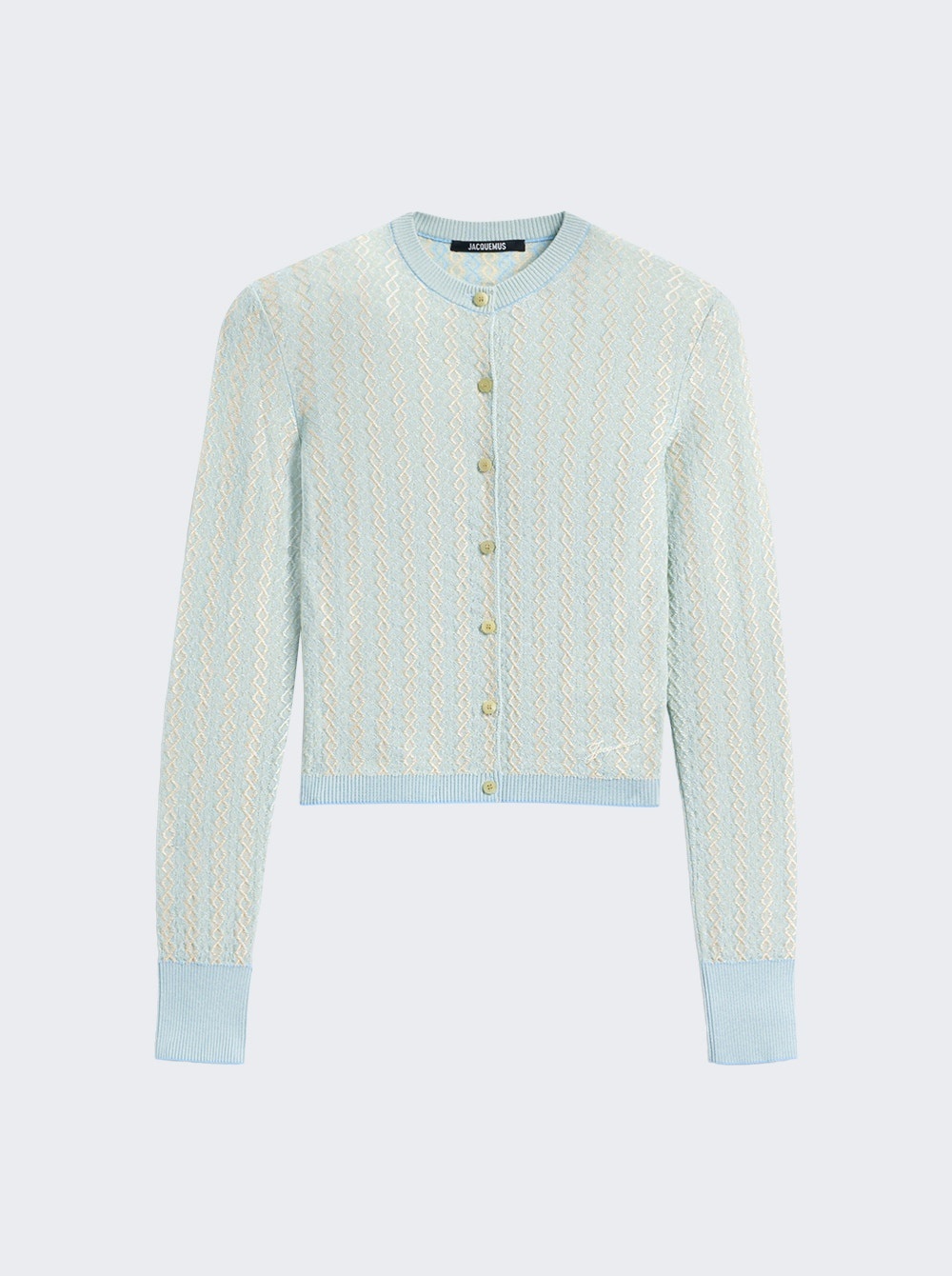 Details - Fitted silhouette - Long sleeves - Button closures - Ribbed cuffs and hem - Care according to label - Material: 93% Viscose, 4% Polyester, 3% Elastane - Model is 5'9"/175cm and is wearing a size FR36 Brand Style: 251KN596-2433 Designer/Brand: JACQUEMUS