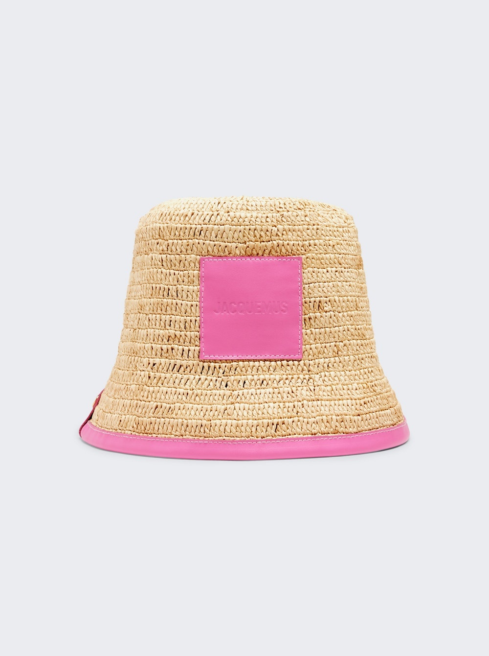 Details - Woven raffia hat - Short visor - Leather logo patch - Leather piped brim and buckle with gold snap fastener - Topstitching Dimensions: Fits true to size Composition: Cowskin Care: Care according to label Brand Style: 245AC642-3060 Designer/Brand: JACQUEMUS