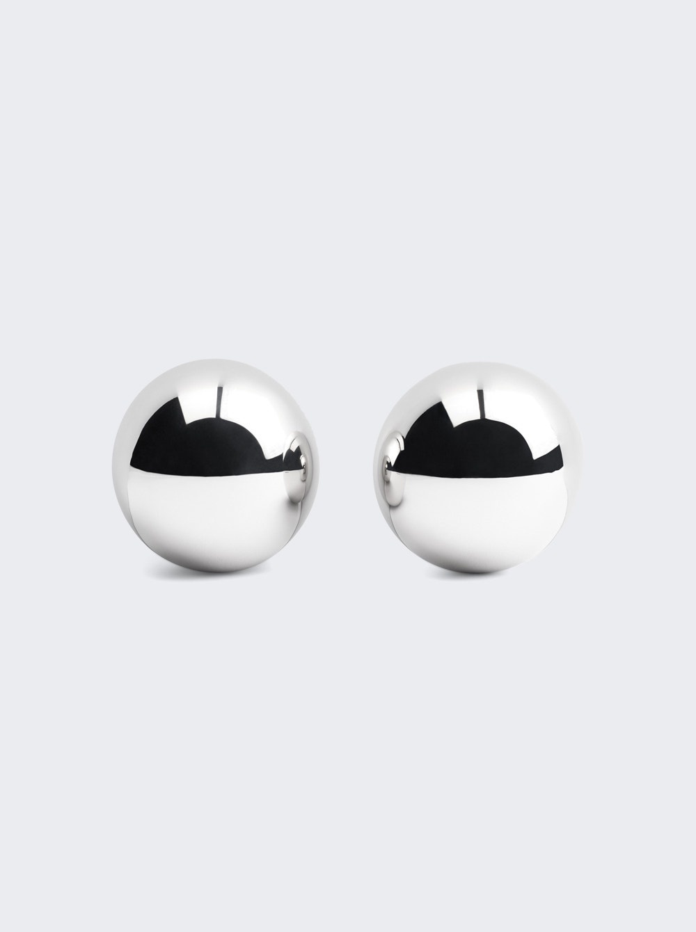 Details - Silver copper circle earrings - Engraved circle and square push-backs - Smooth finish - Debossed logo - Material: 100% Copper Brand Style: 251JW736-5845 Designer/Brand: JACQUEMUS