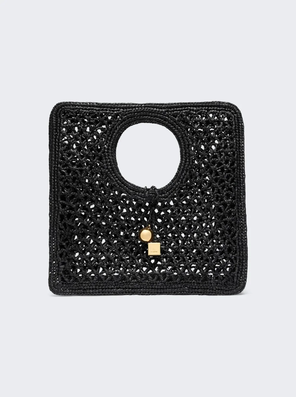 Details - Small square raffia handbag - Flat woven-raffia - Knot closure - Gold-tone metal Rond-Carre charms - Reinforced braided edges - Material: Raffia Size Information: Vendor Color Code: Brand Style: BAW00421AW00513 Designer/Brand: JACQUEMUS