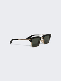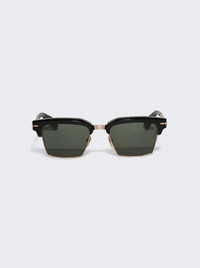 Details - Dark gold 100% Beta Titanium frame - Black cured cellulose acetate - Green lenses with backside anti-reflective treatment - 100% UV protection - Temple length: 145mm - Frame total width: 142mm - Lens width: 52mm - Lens height: 37mm - Bridge: 20mm Classic 50s-inspired combo spectacles with a prominent acetate brow, square titanium lens shape, signature arrowhead monoblock hinge, and finely engraved temples with a unique arrowhead motif. Vendor Color Code: Brand Style: J-ESN-IL-S301N-OS Designer/Brand: JACQUES MARIE MAGE