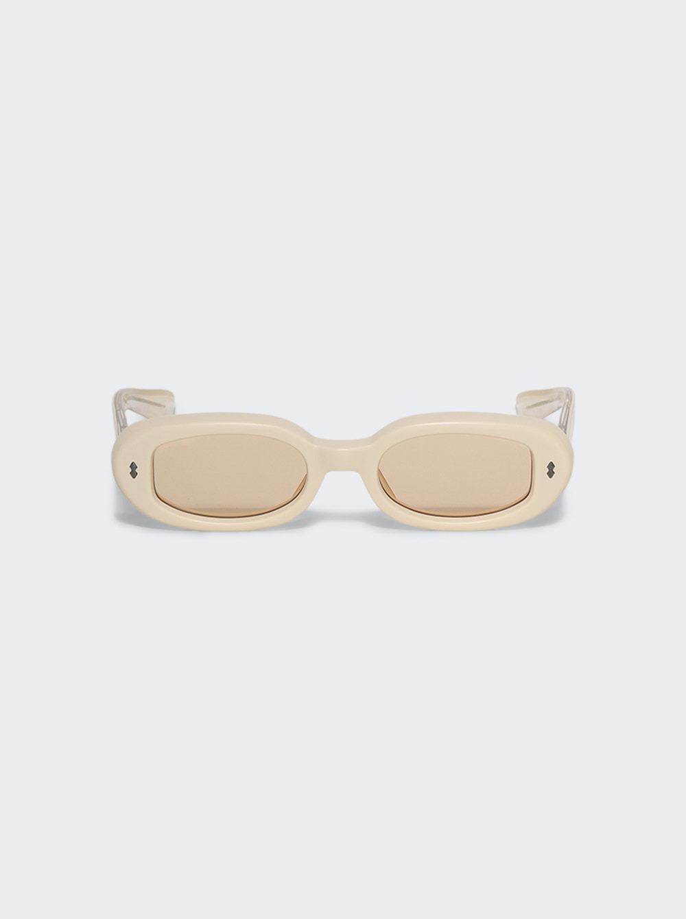 Details - Oval-shaped, '90s-inspired sunglasses, re-imagined in the sun-faded matte pastels of the Suede Collection. - Cured cellulose acetate frame - Custom double laminated acetate temples featuring precious metal hardware - Yellow lenses with anti-reflective treatment - Signature arrowhead front pin - 100% UV protection - Temple length: 143mm; Frame Width: 142mm; Lens width: 48mm; Lens height: 29mm; Bridge: 21mm Vendor Color Code: Brand Style: J-ESN-BES-S1014R-OS Designer/Brand: JACQUES MARIE MAGE