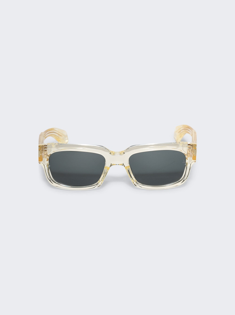 Details - Refined, rectangular, '60s-inspired sunglasses with a medium fit. - Sculpted temples with oversized ergonomic tips - Clear crystal cured cellulose acetate frame - Custom double laminated acetate temples featuring precious metal hardware - Spruce Green CR39 6 Base lenses with anti-reflective treatment - Signature arrowhead front pin - 100% UV protection - Temple length: 146mm; Frame Width: 146mm; Lens width: 54mm; Lens height: 36mm; Bridge: 21mm Vendor Color Code: Brand Style: J-ESN-RZ-T1014Q Designer/Brand: JACQUES MARIE MAGE