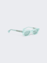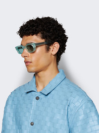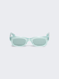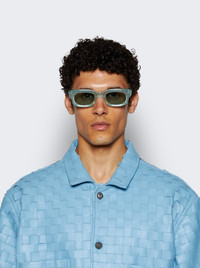 Details - '90s-Inspired rectangular frame sunglasses with volume - Blue 10mm cellulose acetate frame - Custom triple-laminated acetate temples - Turquoise blue lenses with anti-reflective treatment - 100% UV protection - Temple Length: 146mm - Frame Total Width: 145mm - Lens Width: 48mm - Lens Height: 31mm - Bridge: 25mm Brand Style: JMMWC-15V Designer/Brand: JACQUES MARIE MAGE