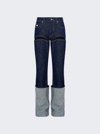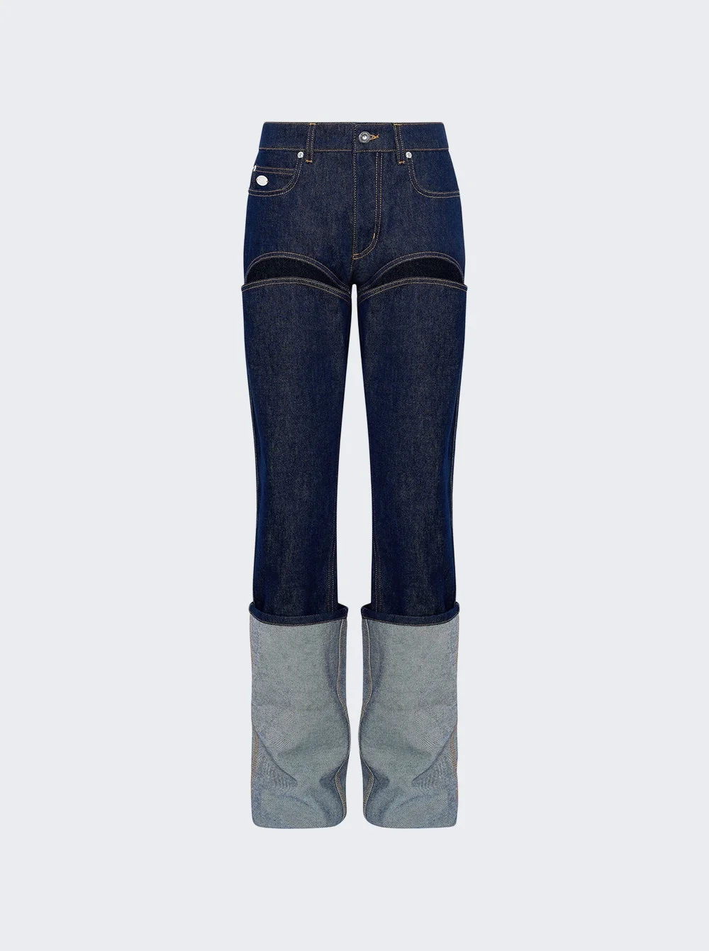 Details - Straight leg jeans with curved cutouts on the upper thighs - Extra tall cuffs - Five-pocket construction - Zip-fly and button closure - Material: 100% Cotton Vendor Color Code: Brand Style: 26/01-W-TR046-D024-55 Designer/Brand: JEAN PAUL GAULTIER