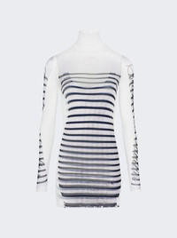 Details - Short fitted - Stretch fabric - Long sleeves and turtleneck - Trompe l'oeil mariniere print Dimensions: Model is 5'9"/175cm and is wearing a size S Composition: 87% Polyester, 13% Elastane; 94% Polyamide, 6% Elastane Care: Care according to label Brand Style: 24/30-F-RO266-J559-015900 Designer/Brand: JEAN PAUL GAULTIER