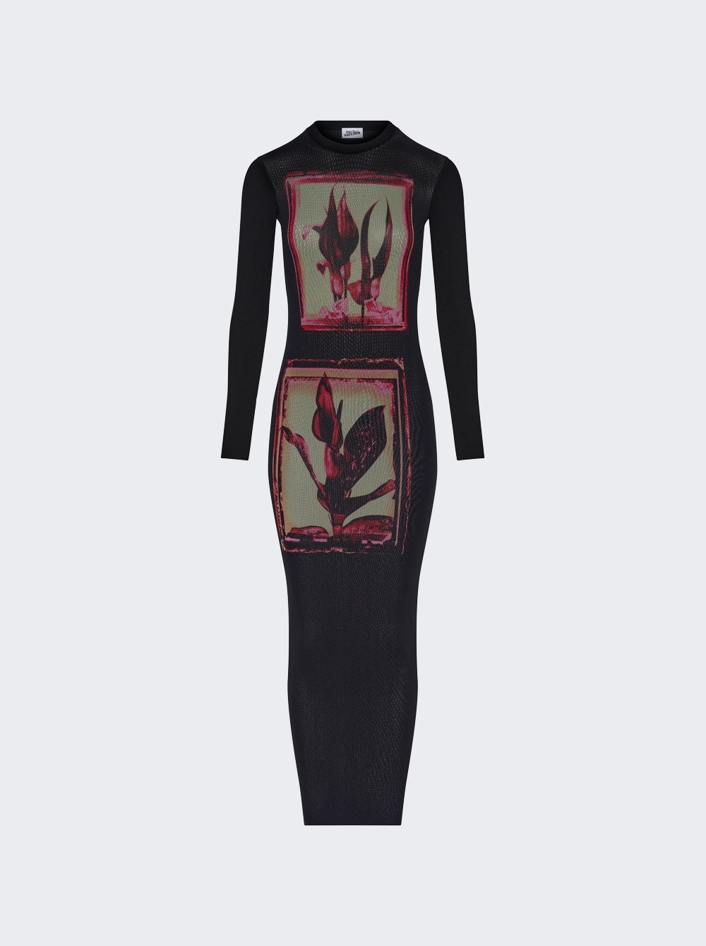 Details - Mesh long - Knitted sleeves - Fitted design - Placed "Flowers Cadres" print - Model is 5'9"/175cm and is wearing a size S - 100% Polyamide Brand Style: 25/33-F-RO359-T579-002142 Designer/Brand: JEAN PAUL GAULTIER
