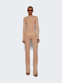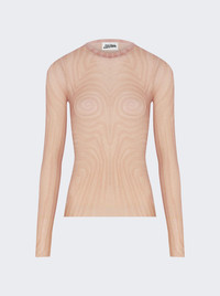 Long Sleeve Mesh Spiral Top Pale Pink