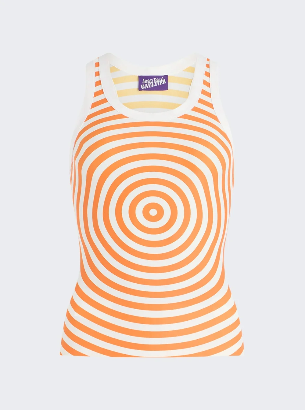 Details - Lycra jersey tank top with “Target” print - Semi-slim fit - Contrasting white edging - Wide straps - Material: 78% polyamide, 22% elastane Vendor Color Code: Brand Style: 26/02-W-TO477-J046P-0115 Designer/Brand: JEAN PAUL GAULTIER