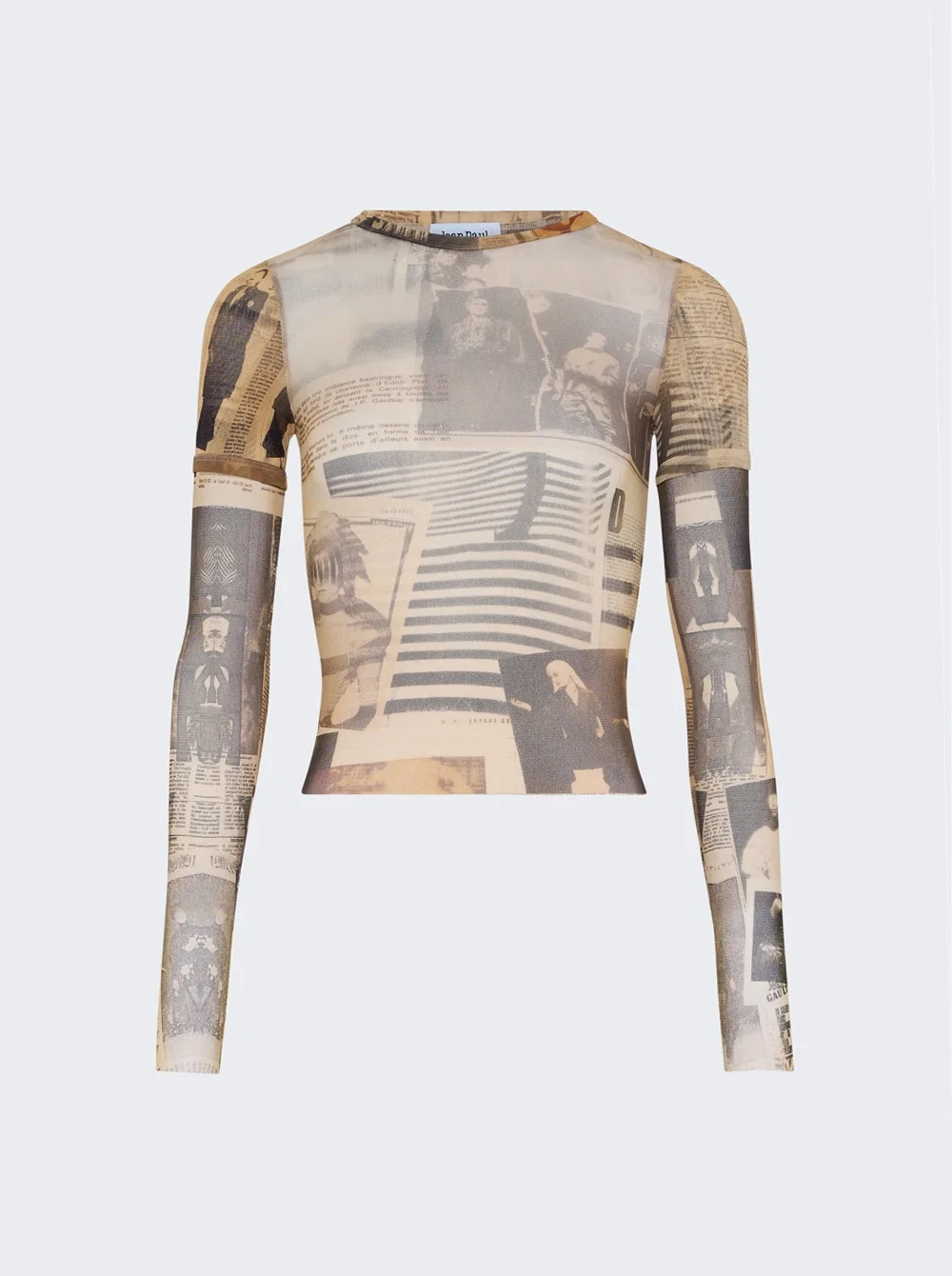 Details - Tight fit, long sleeve mesh top - Double sleeves sewn at the shoulders - Stretchy material - Material: 100% Polyamide Vendor Color Code: Brand Style: 26/01-W-TO416-M013P-030830 Designer/Brand: JEAN PAUL GAULTIER
