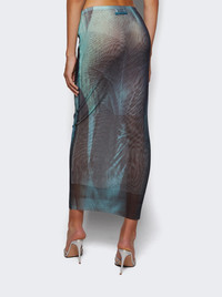 Details - Mesh long skirt - "Water" print - Semi-sheer - Tight fit, stretchy material - Tulle lining - Elastic waistband - Ankle length - Material: 100% Polyamide Size Information: Vendor Color Code: Brand Style: 25/03-W-SK006-M004P-5557 Designer/Brand: JEAN PAUL GAULTIER