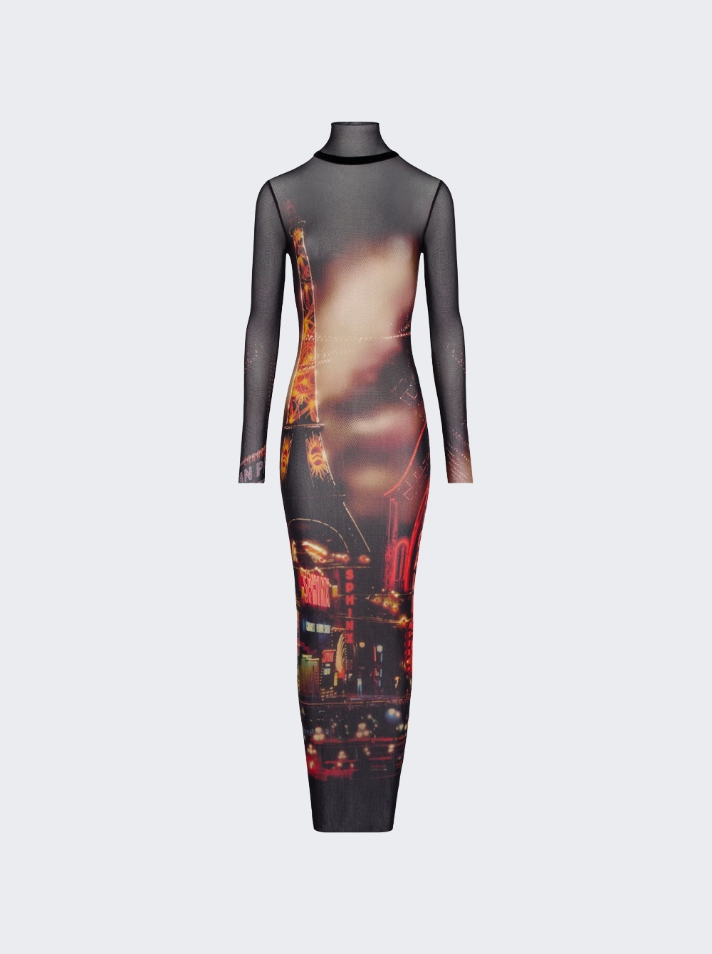 Details - Mesh long sleeve - Long length - Fitted silhouette - Turtleneck - Pigalle city print throughout Dimensions: Model is 5'9"/175cm and is wearing a size S Composition: 100% Polyamide Care: Care according to label Brand Style: 24/30-F-RO247-T552-00301550 Designer/Brand: JEAN PAUL GAULTIER