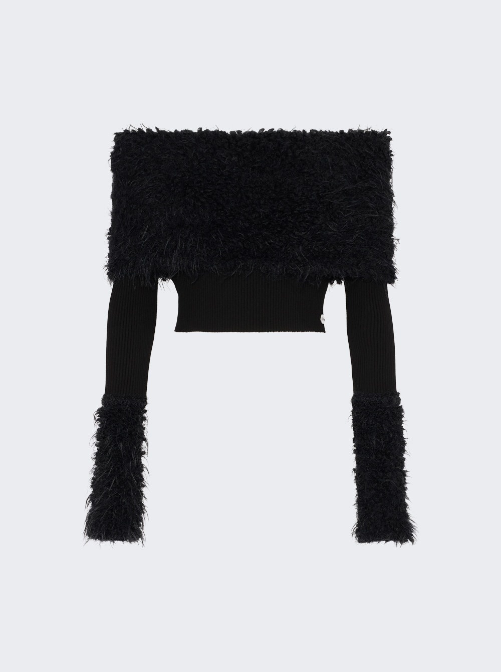 Details - Viscose ribbed knit sweater with fuzzy trim - Off-the-shoulder design - Long sleeves - Material: Viscose; Polyamide Size Information: Vendor Color Code: Brand Style: 25/03-W-PO018-K005-00 Designer/Brand: JEAN PAUL GAULTIER