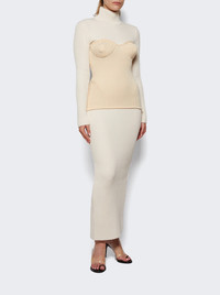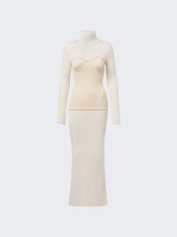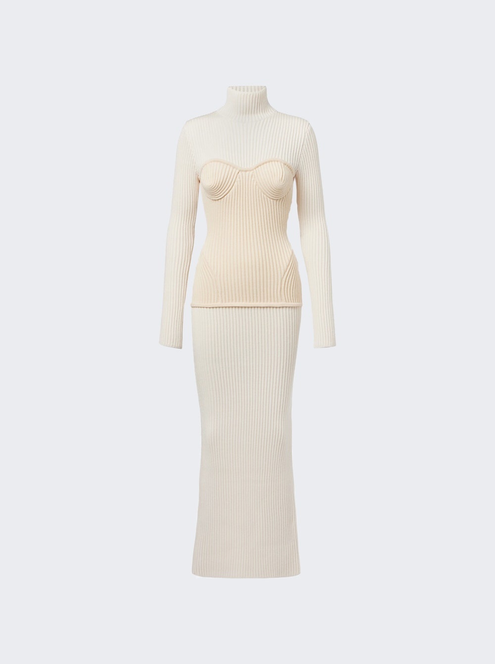 Details - Fitted ribbed Merino Wool - Bicolor design with a corset-style bodice - High neck and long sleeves - Material: Merino Wool Size Information: Vendor Color Code: Brand Style: 25/03-W-DR005-K001-0103 Designer/Brand: JEAN PAUL GAULTIER