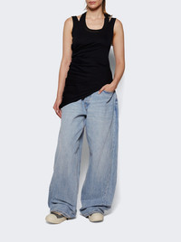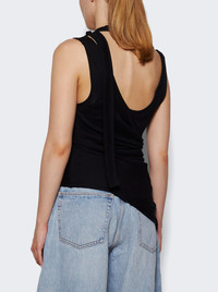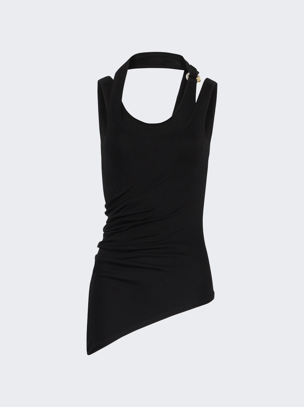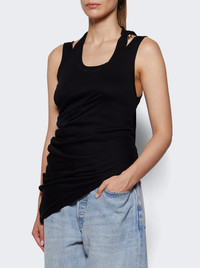 Black Ribbed Twisted Double Layer Piercing Tank Top