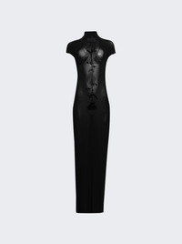 Details - Semi-sheer long viscose jersey - Velvet flocking on front - Cut-outs at sides - Short sleeves and high neck - Stretchy fabric - Model is 5'9"/175cm and is wearing a size S - Material: 100% Viscose Brand Style: 25/34-F-RO389IJ082-00 Designer/Brand: JEAN PAUL GAULTIER