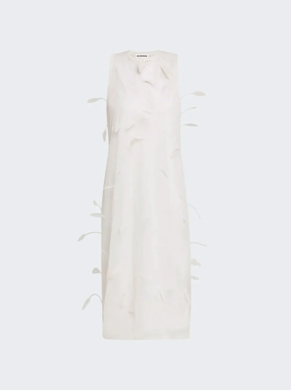 Details - Silk midi - embellished with feathers - Round neckline - Button keyhole closure at back - Sleeveless, sheath silhouette - Slipover style - Material: Silk; Lining: Viscose Vendor Color Code: Brand Style: J03CT0548 J16141 Designer/Brand: JIL SANDER
