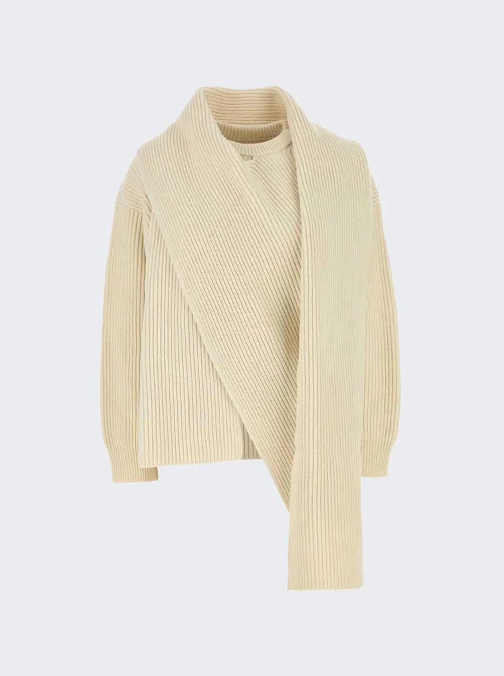 Long Sleeve Jumper With Draped Scarf Neck Eggshell
