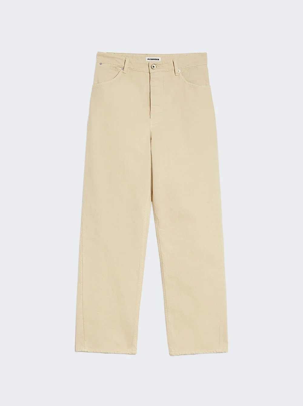 Details - Relaxed fit - High rise - Belt loops - Zip and button closure - 5 pocket design - Leather patch with a logo at the waistband - Care according to label - Material: 100% Cotton Vendor Color Code: Brand Style: J22KA0323 J46463 Designer/Brand: JIL SANDER