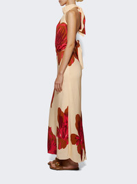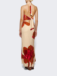 Details - Halter neckline - Open back - Wide self-ties at the neck and waist - Printed with oversized floral motifs - Back zip closure - Care according to label - Material: 95% Viscose, 5% Elastane Size Information: Vendor Color Code: Brand Style: PT03184 Designer/Brand: JOHANNA ORTIZ