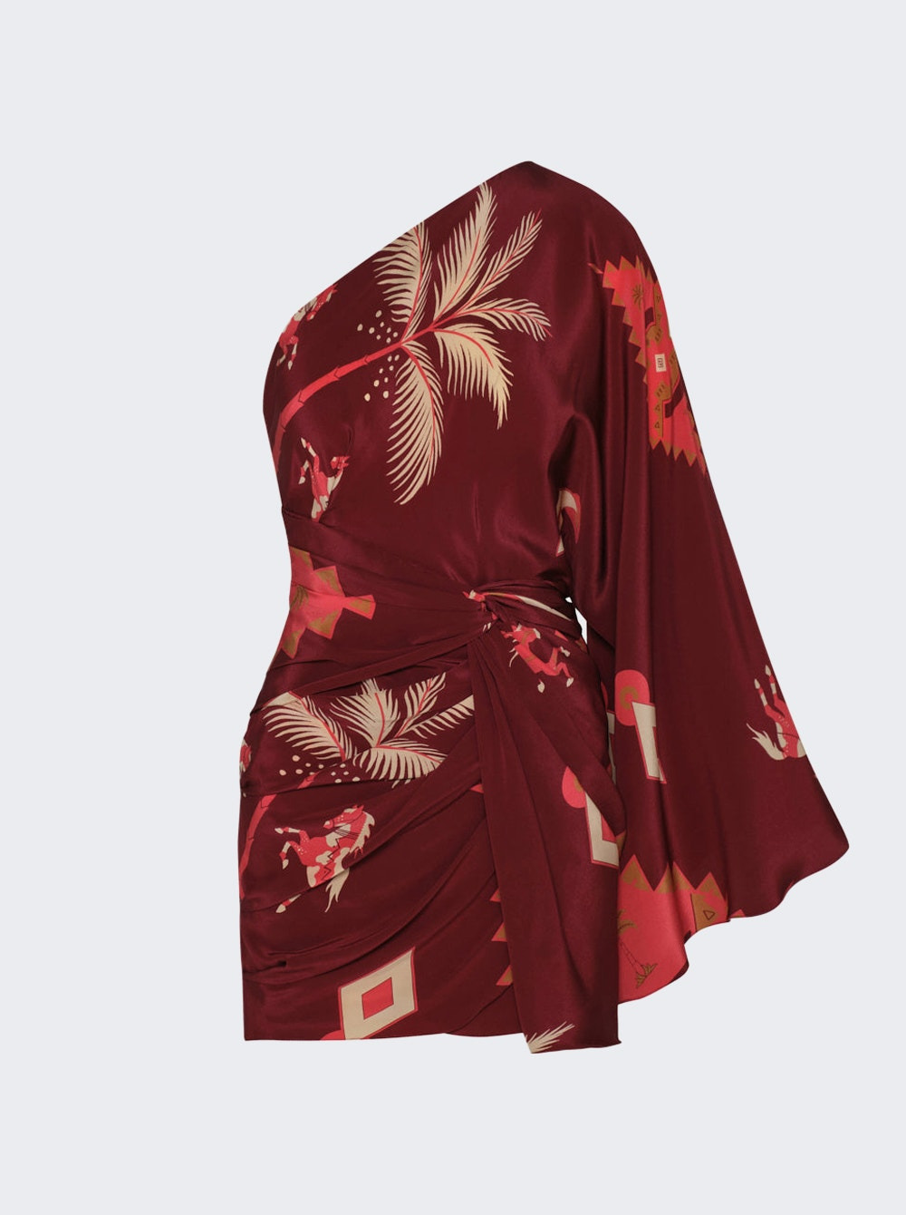 Details - Mini length - One shoulder silhouette - Sculptural draping - Printed with bold palm and geometric motifs - Asymmetrical hem - Care according to label - Material: 100% Silk Size Information: Vendor Color Code: Brand Style: PT03178 Designer/Brand: JOHANNA ORTIZ