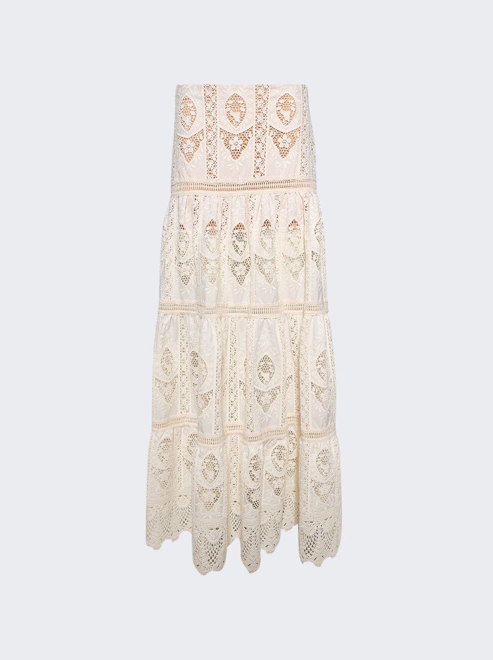 Details - Maxi length - Embroidered voile - High waisted - Paneled construction - Intricate cutwork - Back Zipper - Care according to label - Material: 100% Polyester Size Information: Vendor Color Code: Brand Style: PT03151 Designer/Brand: JOHANNA ORTIZ