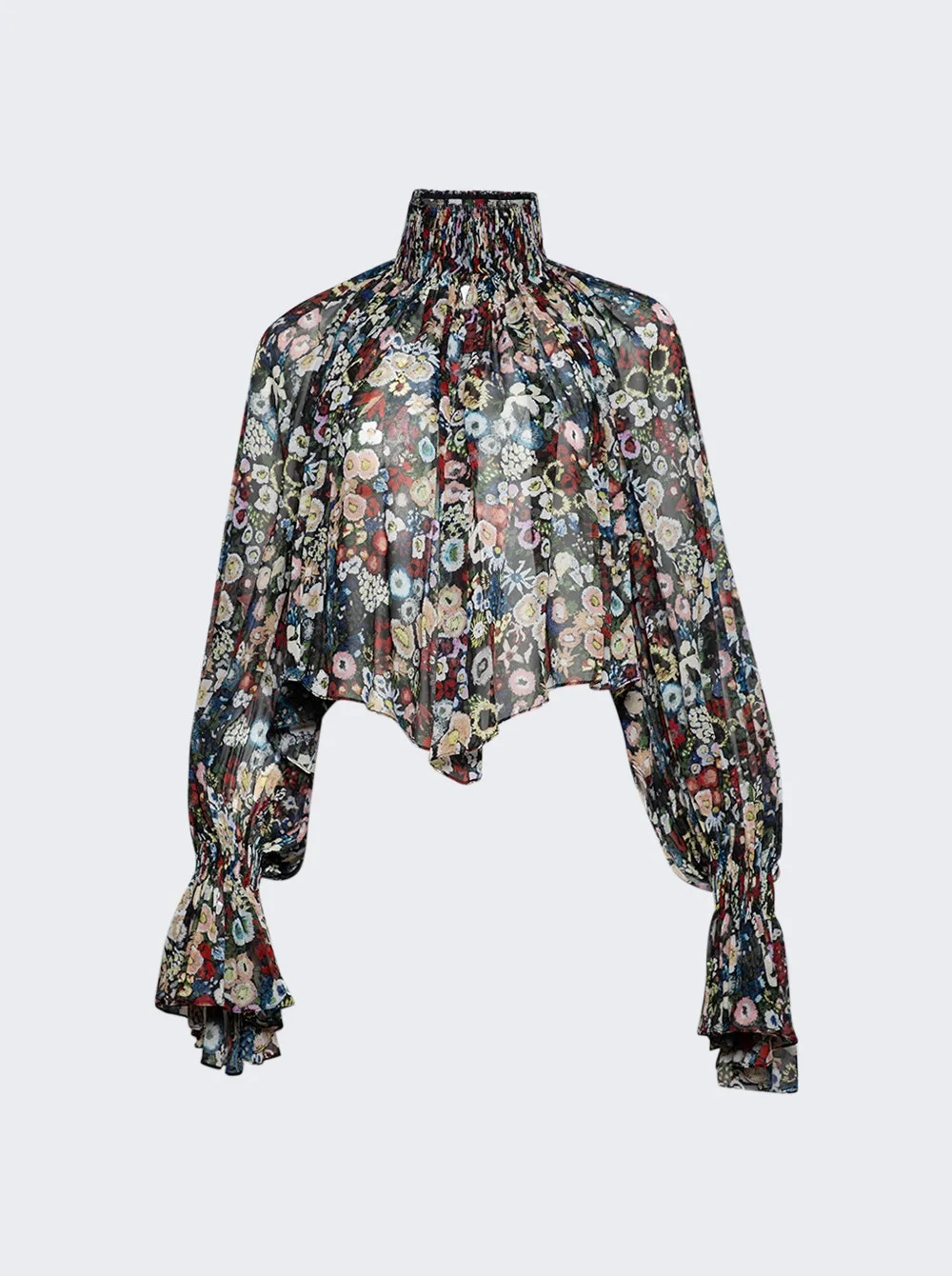 Details - Regular fit - Long sleeves - High stand collar - Hand-crushed cartridge pleating - Billowing sleeves cinched at the wrist - Care according to label - Material:100% Silk Vendor Color Code: Brand Style: 24323372 Designer/Brand: KHAITE