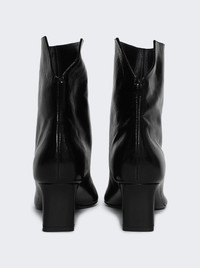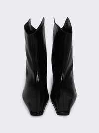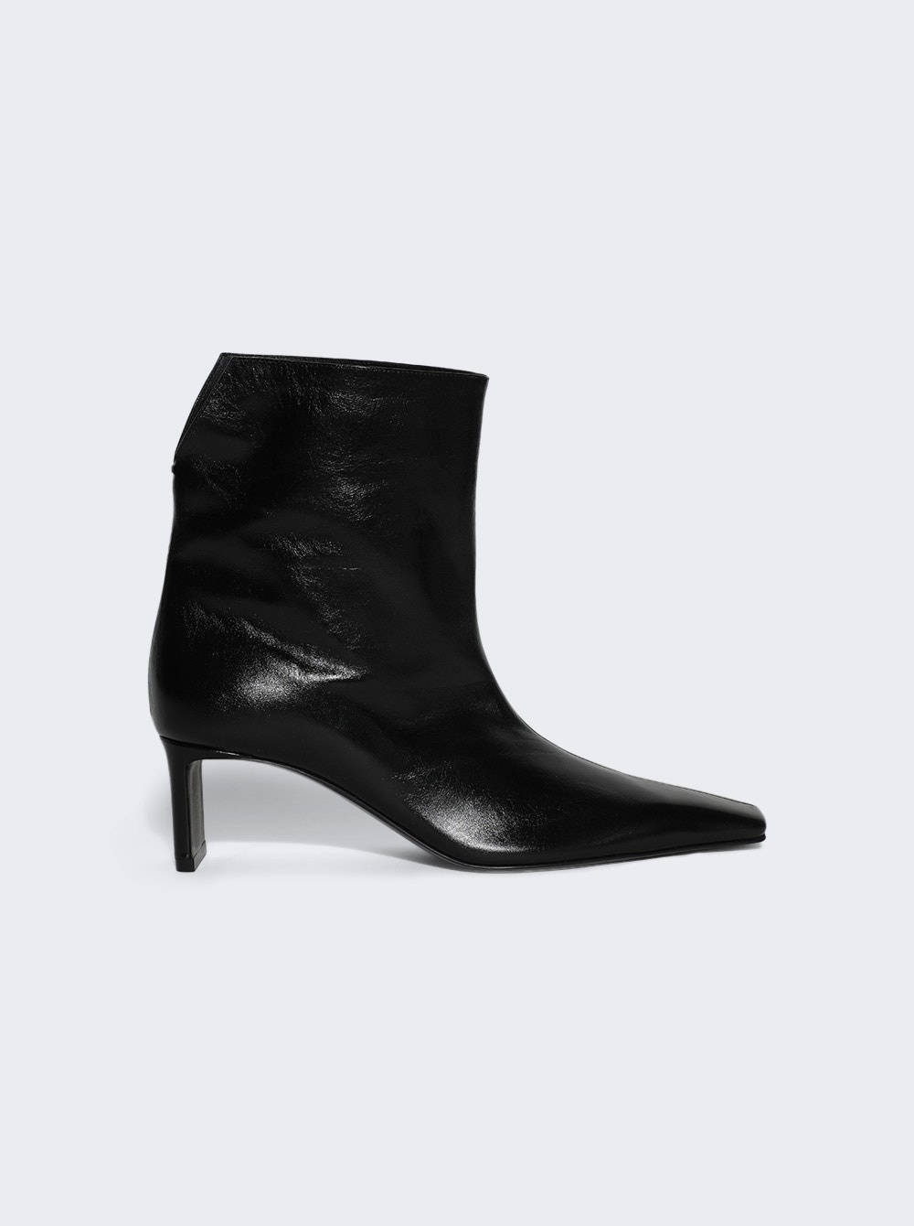 Details - Square-toed ankle boot - A distinctively notched back enhances the pull-on ease - Sleek blade heel and tonal outsole - Runs large. Recommended to size down a half size - Heel Height: 2.2 in - 100% Calfskin Brand Style: F1100-907 Designer/Brand: KHAITE