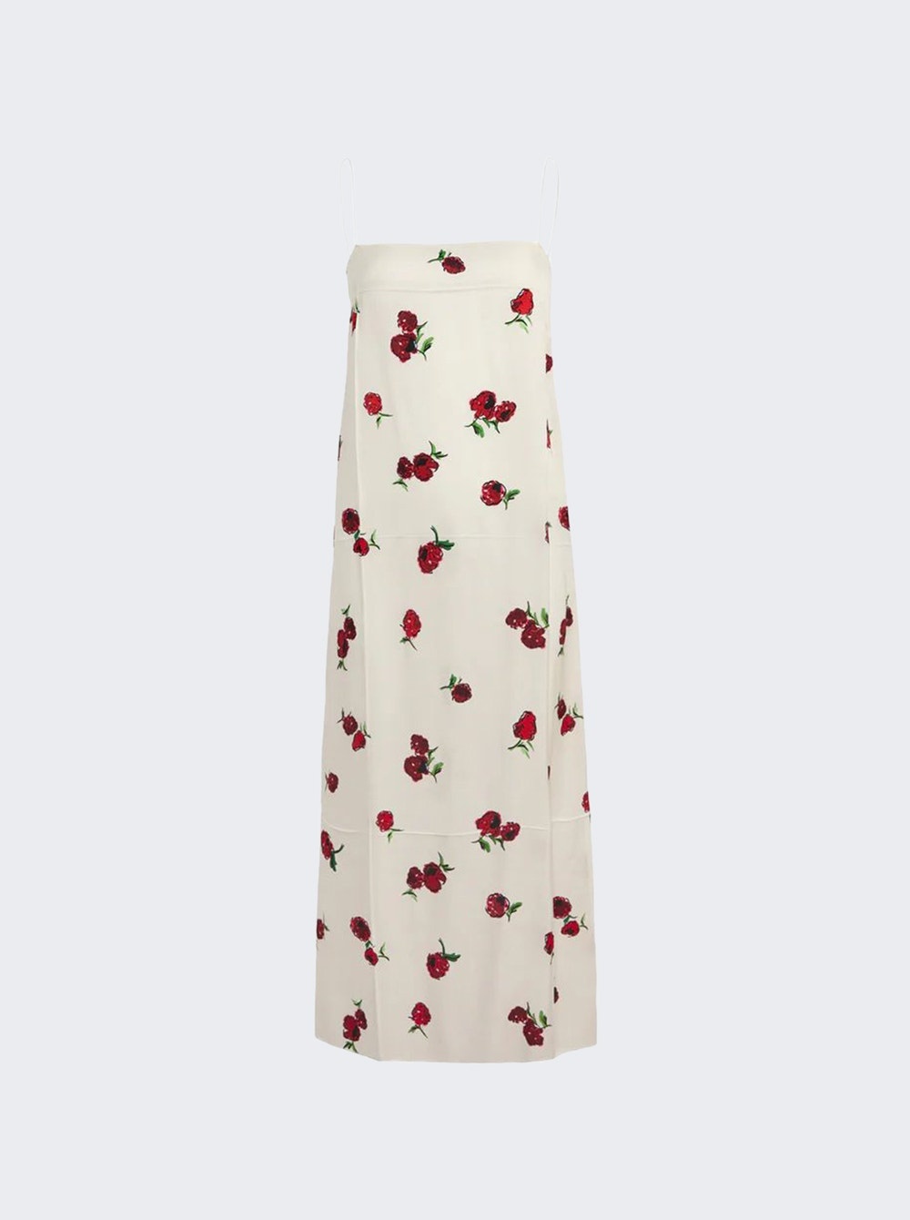 Details - Regular fit - Thin straps - Side slit slip - Printed with raspberries - Constructed with linear - Pressed pleats - Concealed side zipper closure - Care according to label - Material: 100% Viscose Size Information: Vendor Color Code: Brand Style: 53464214 W4214 Designer/Brand: KHAITE