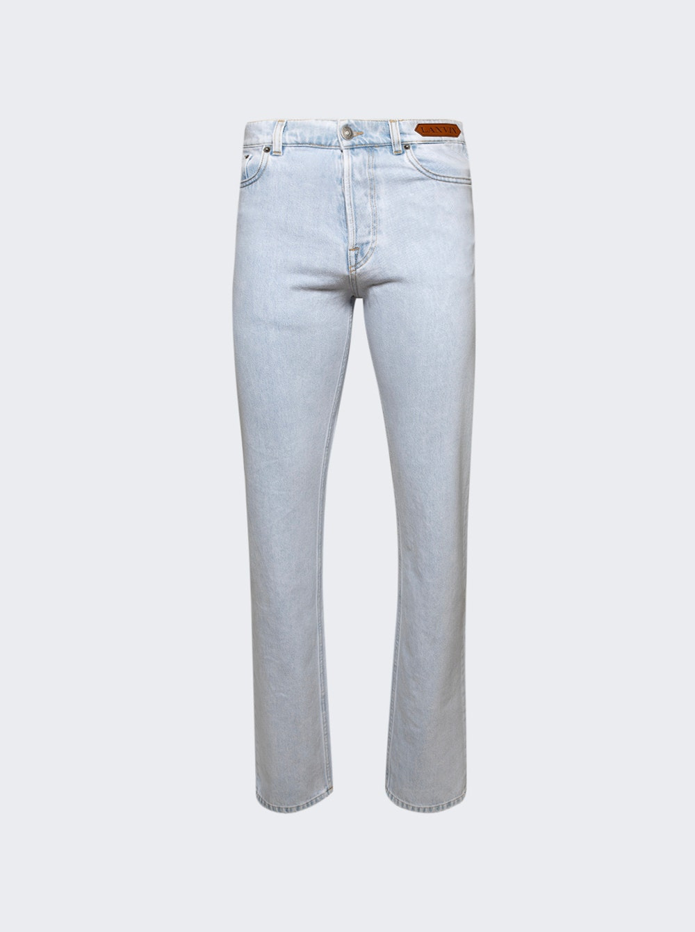 Details - Regular fit, denim jeans - Slight tapered leg - Front button fastening - Classic five pocket styling - Material: 100% Cotton Size Information: Vendor Color Code: Brand Style: RM-TR0319-D093-H25 Designer/Brand: LANVIN