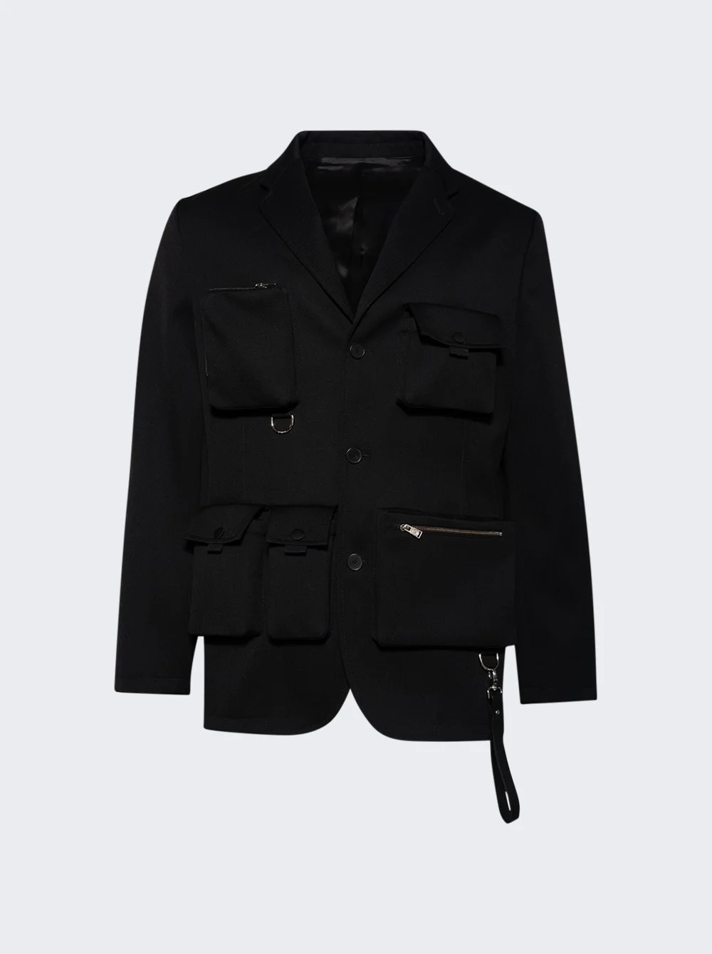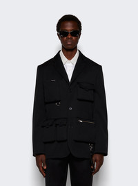 Details - Utility jacket in wool - Straight fit - Collar with notched lapels - Soft non-structured shoulders - Buttoned fastening - Multiple pockets with different shapes and details - Technical details contrast with the elegant lines of this garment for a unique and modern piece - Main fabric : 100% wool woven - Lining : 100% viscose woven - Model is 6'1"/185cm and is wearing a size FR54 Brand Style: RM-JA0080-4885-H24 Designer/Brand: LANVIN
