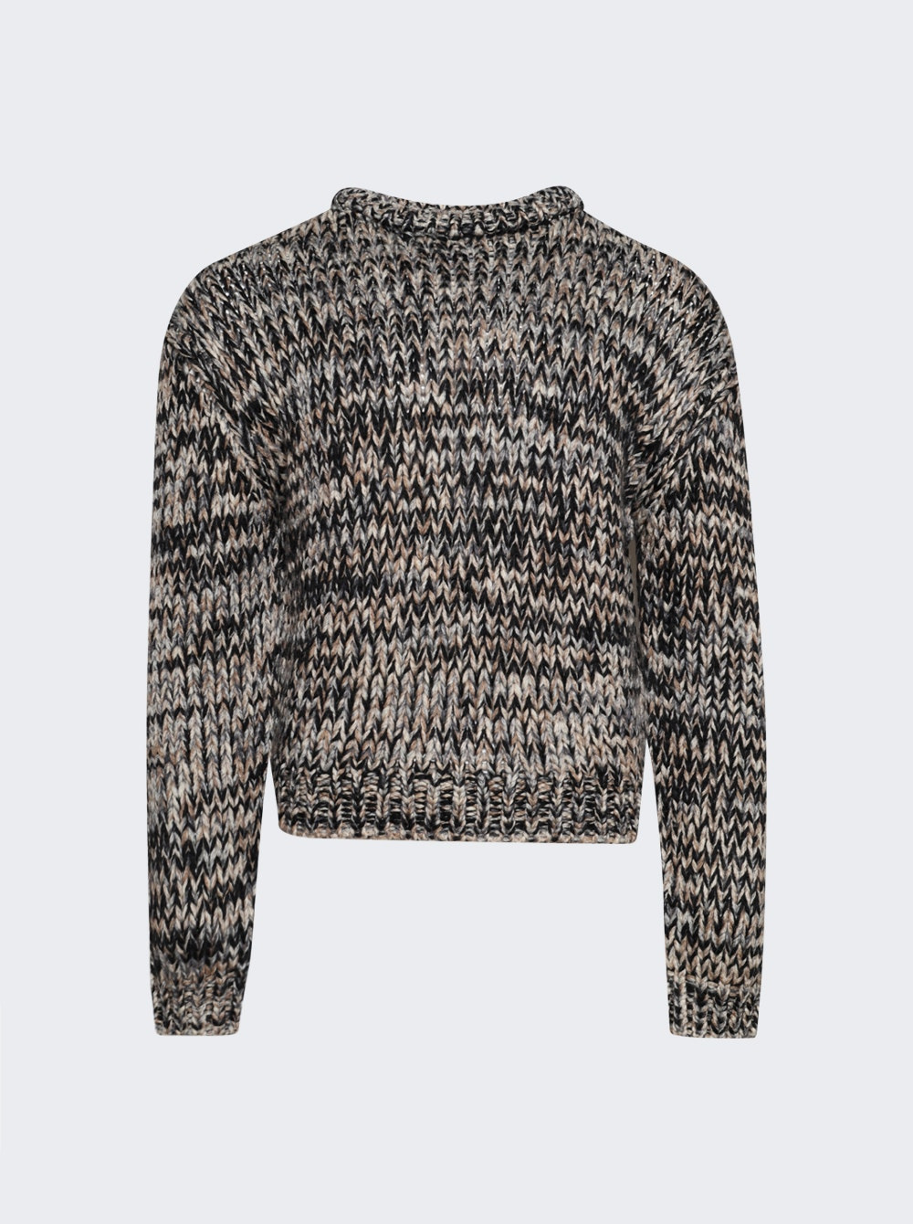 Details - Chunky wool sweater - Black, white and brown melange yarn - Boxy fit, crew neck - Material: 90% Wool, 10% Polyamide Size Information: Vendor Color Code: Brand Style: TO1436 LK1046 Designer/Brand: LEMAIRE