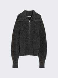 Zipped Cardigan Black And Mink Brown