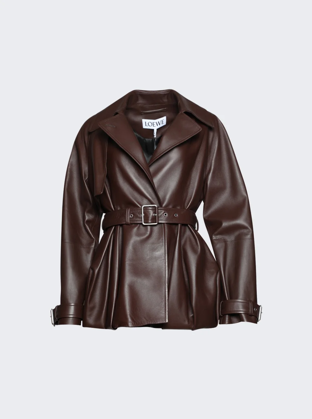Details - Regular fit - Peak lapel - Button front fastening - Removable belt - Belted cuffs - Seam pockets - Inside welt pocket - Fully lined - LOEWE Anagram embossed leather patch placed at the back - Care according to label - Material: Vendor Color Code: Brand Style: S540Y34L59 Designer/Brand: LOEWE