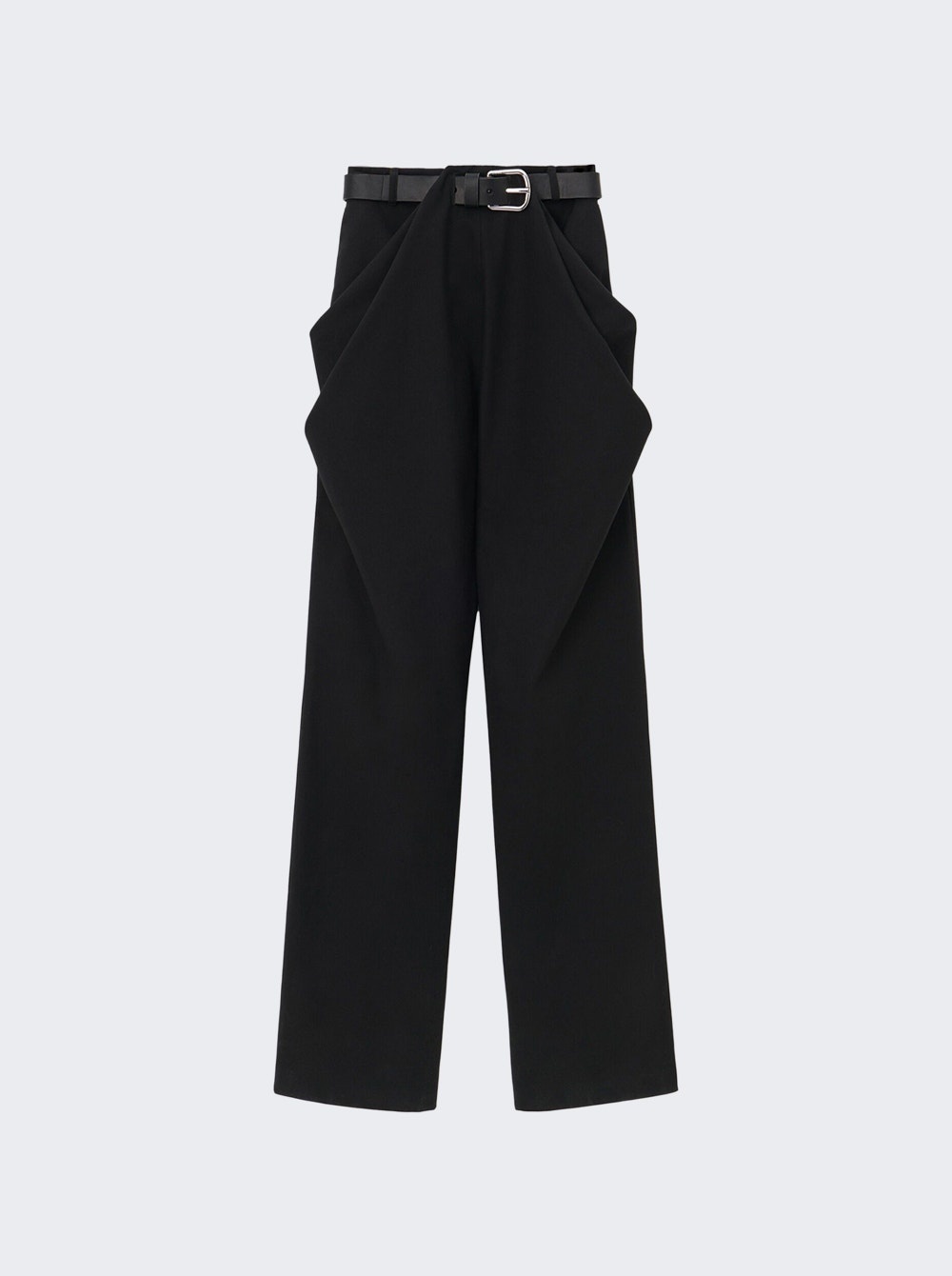 Details - Trousers crafted in lightweight cotton twill - Relaxed fit - Regular length - High waist - Straight leg - Draped front panel held by a leather belt with a LOEWE engraved buckle - Belt loops - Concealed zip fastening - Seam pockets - Rear welt pocket Dimensions: Model is 5'9"/175cm and is wearing a size EU36 Composition: Cotton Care: Care according to label Brand Style: S359Y04XDV Designer/Brand: LOEWE
