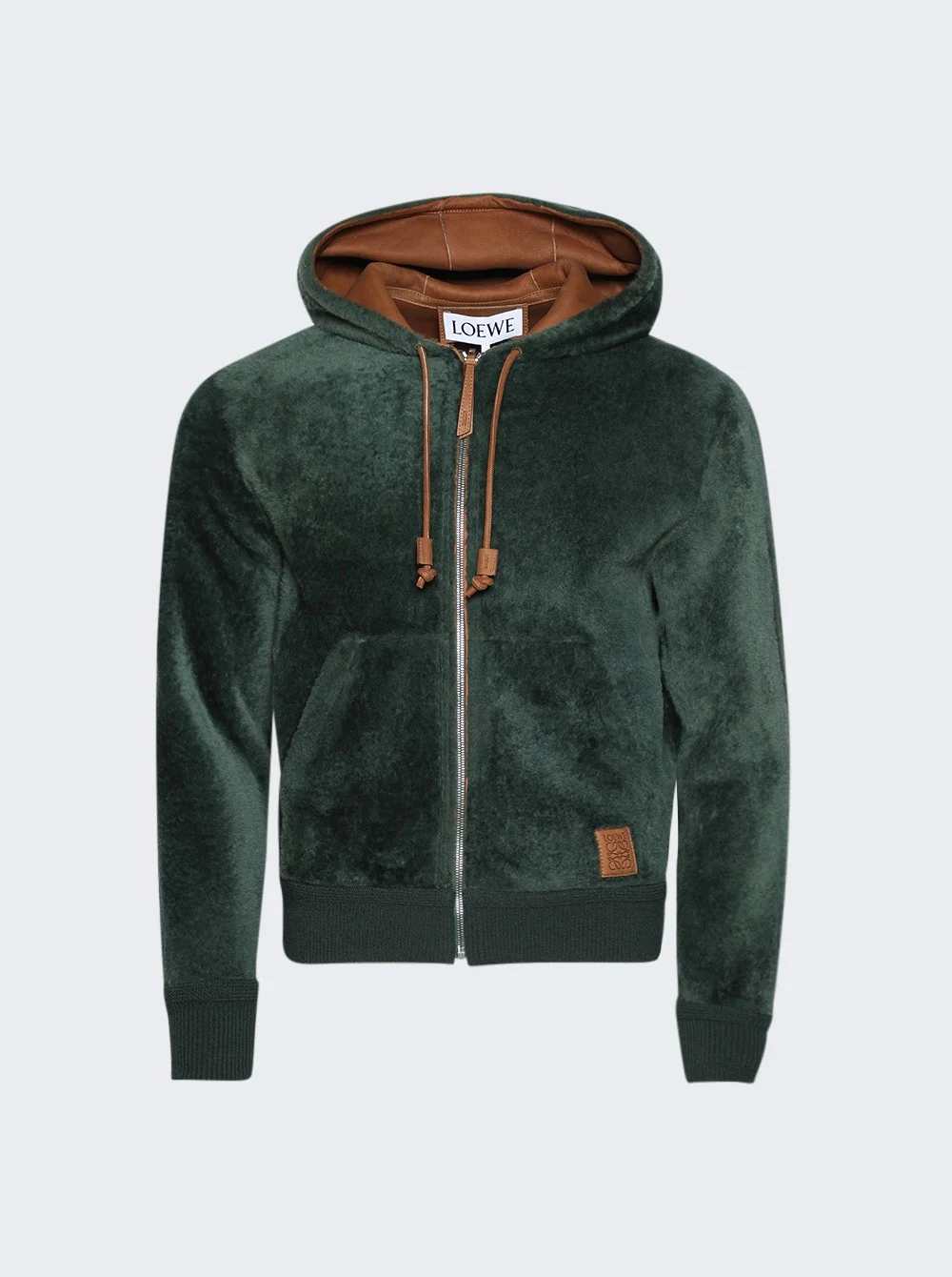 Details - Regular fit - Hooded collar - Zip front fastening - Kangaroo pockets - Rib knit cuffs and hem - LOEWE Anagram embossed leather patch placed on the front pocket - LOEWE embossed leather patch placed on the drawstring - Care according to label - Material: Shearling Vendor Color Code: Brand Style: H526Y2SL41 Designer/Brand: LOEWE