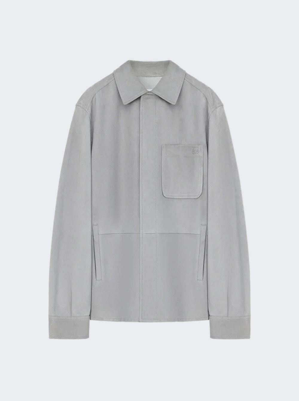 Details - Lightweight suede lambskin overshirt - Pleats at the sleeves and back - Regular fit, regular length - Classic collar - Concealed snap button front fastening, buttoned cuffs - Chest patch pocket, vertical welt pockets - Unlined - Embossed Anagram on the chest patch pocket - Material: 100% Suede lambskin leather Size Information: Vendor Color Code: Brand Style: H526Y31L48 Designer/Brand: LOEWE