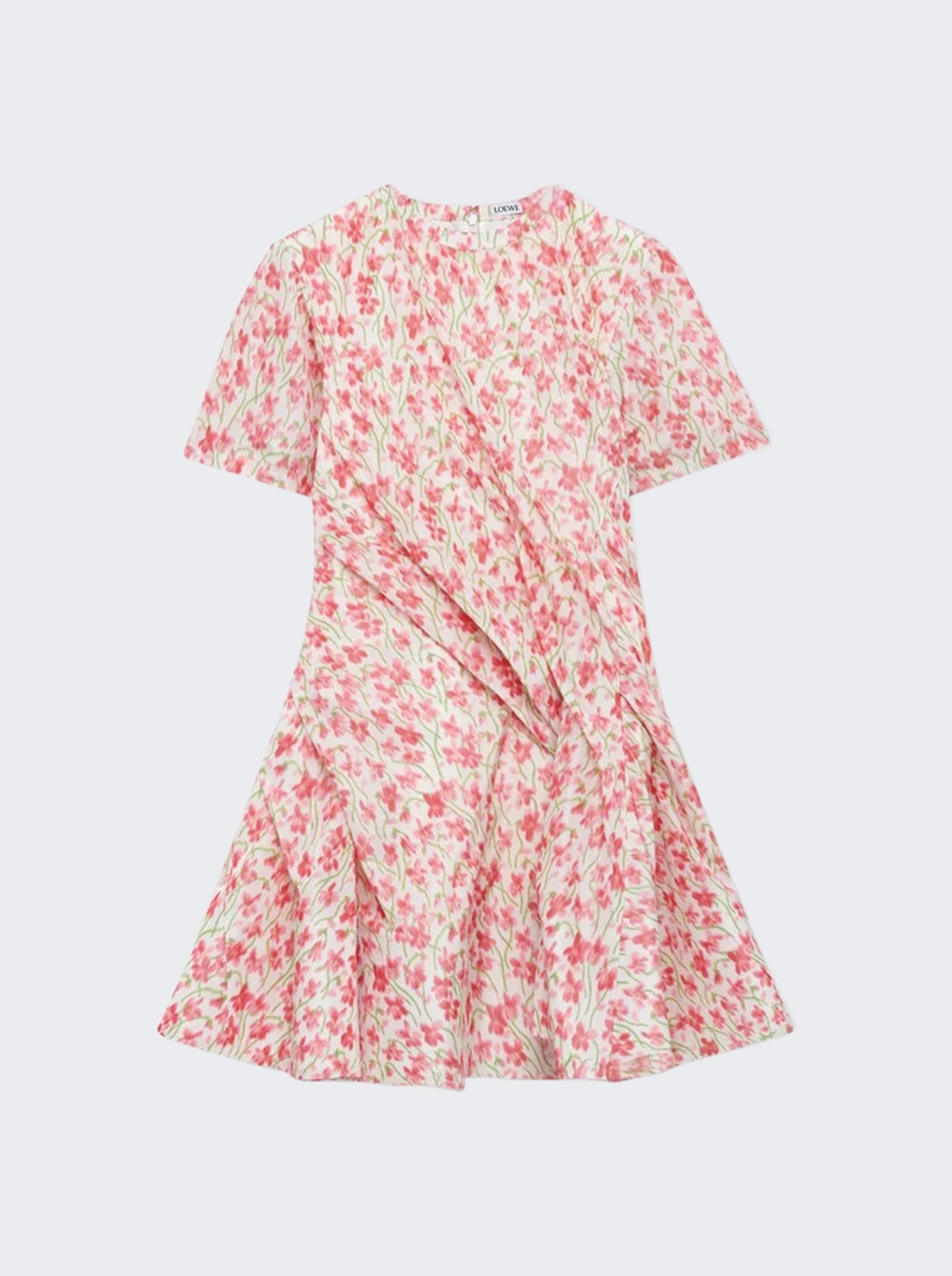 Details - Lightweight silk blend taffeta - Allover floral pattern - Asymmetric hand-draped silhouette - Regular fit, short length - Round neck - Rear zip fastening - Fully lined - Material: 33% Silk, 67% Polyester Size Information: Vendor Color Code: Brand Style: S359Y09XJ4 Designer/Brand: LOEWE