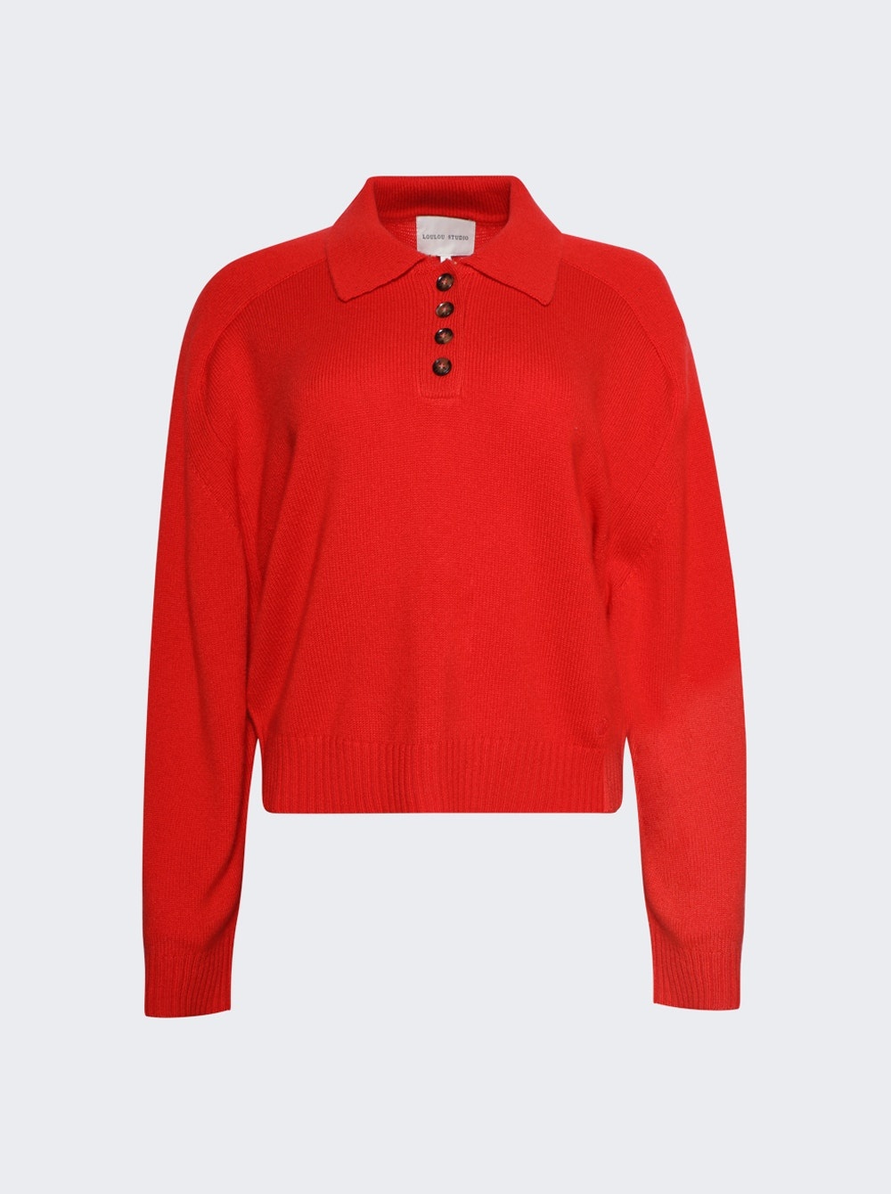 Details - Cashmere polo sweater - Polo collar and 4 buttons - Drop shoulders - Ribbed hem and cuffs - Model is 5'9"/175cm and is wearing a size S - 100% Cashmere Brand Style: HOMERE Designer/Brand: LOULOU DE SAISON