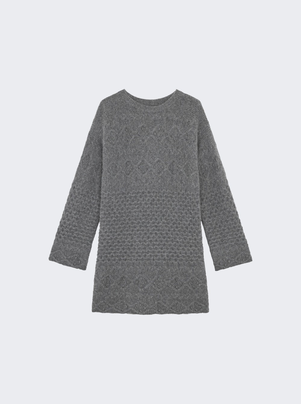 Details - Wool blend knit - Long sleeves - Loose, relaxed fit - Wide sleeves - Cable knit Dimensions: Model is 5'9"/175cm and is wearing a size S Composition: Wool, 40% Yak Fiber Wool, 10% Nylon Care: Care according to label Brand Style: PELAGIA Designer/Brand: LOULOU DE SAISON