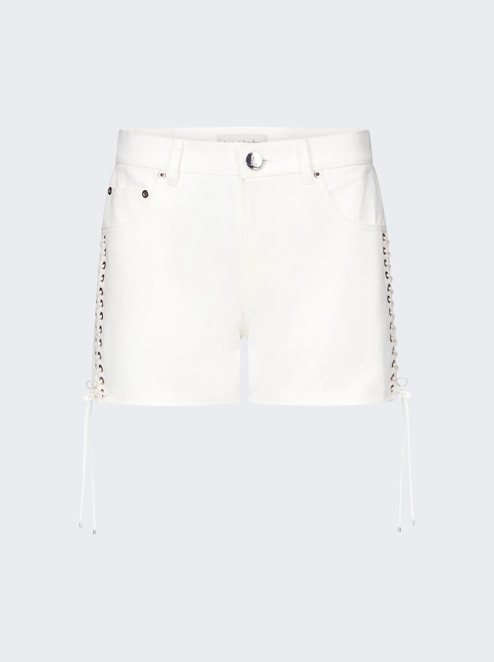 Details - Mini length - Belt loops - Five pockets - Logo patch to the rear - Eyelet detailing - Lace up on the sides - Zip and button closure - Care according to label - Material: 100% Cotton - Model is 5'9"/175cm and is wearing a size US26 Brand Style: CO-ST003-W-DEN0003 Designer/Brand: LUDOVIC DE SAINT SERNIN
