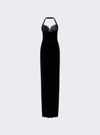 Details - Long velvet - Contrast bustier neckline - Halter straps - Signature grommet and lacing detail - Zip fastening - 90% Polyester, 10% Polyurethane - Model is 5'9"/175cm and is wearing a size S Brand Style: AW24-DR025-W-PL0009 Designer/Brand: LUDOVIC DE SAINT SERNIN